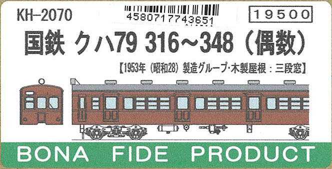 | KH-2070 | 国鉄クハ79 316~348(偶数) キット | \21,450 | \20,378 | 新製品 |
