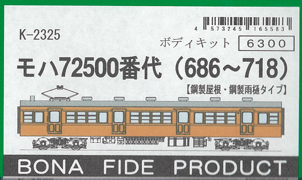 | K-2325 | 国鉄モハ72500番代 (686〜718) | ボディーキット | 1両 | ¥6,930 | ¥6,583 | 再生産5%OFF |
