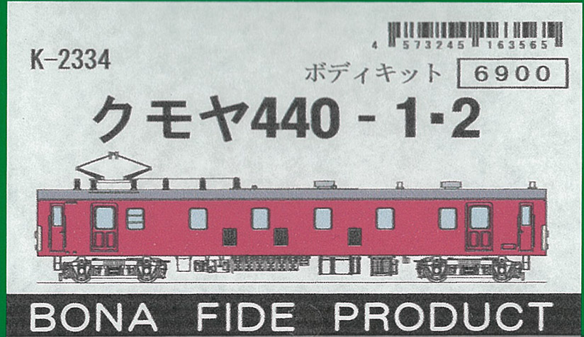 | K-2334 | 国鉄クモヤ440-1-2 | ボディーキット | 1両 | ¥7,590 | ¥7,210 | 再生産5%OFF |