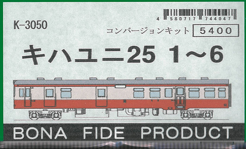 | K-3050 | 国鉄キハユニ25-1〜6 | ボディーキット | 1両 | ¥5,940 | ¥5,643 | 再生産5%OFF |