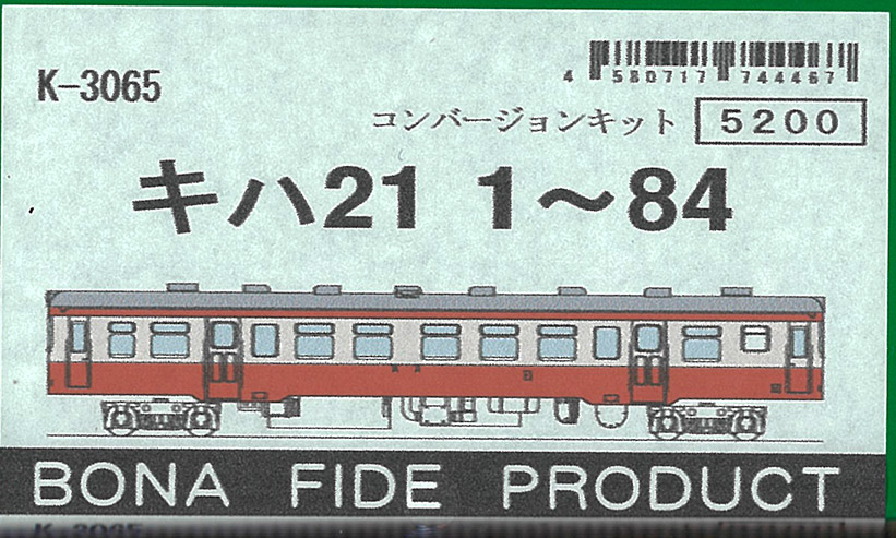 | K-3065 | 国鉄キハ21-1〜84 | コンバージョンキット | 1両 | ¥5,720 | ¥5,434 | 再生産5%OFF |