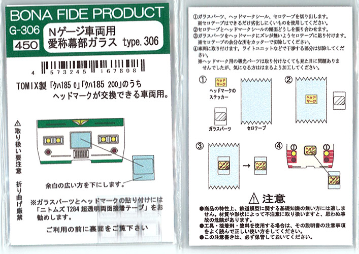 | G-306 | 愛称幕部ガラス type6 (TOMIX クハ185-0.クハ185-200用) | 6枚 | ¥495 | ¥495 | 再生産 |