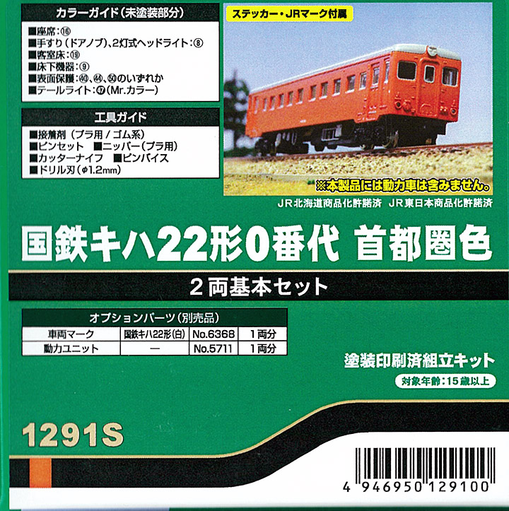 | #1291S | 国鉄キハ22-0 首都圏色 塗装済みキット | 基本2両 | ¥11,000 | ¥8,800 | 新製品20%OFF |