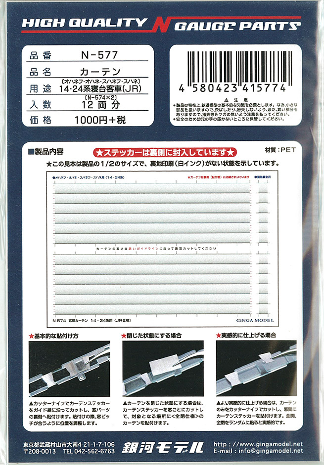| N-577 | カーテン 14.24系 (JRオハネフ・オハネ・スハネフ・スハネ) | 12両分 | ¥1,100 | ¥1,100 | |
