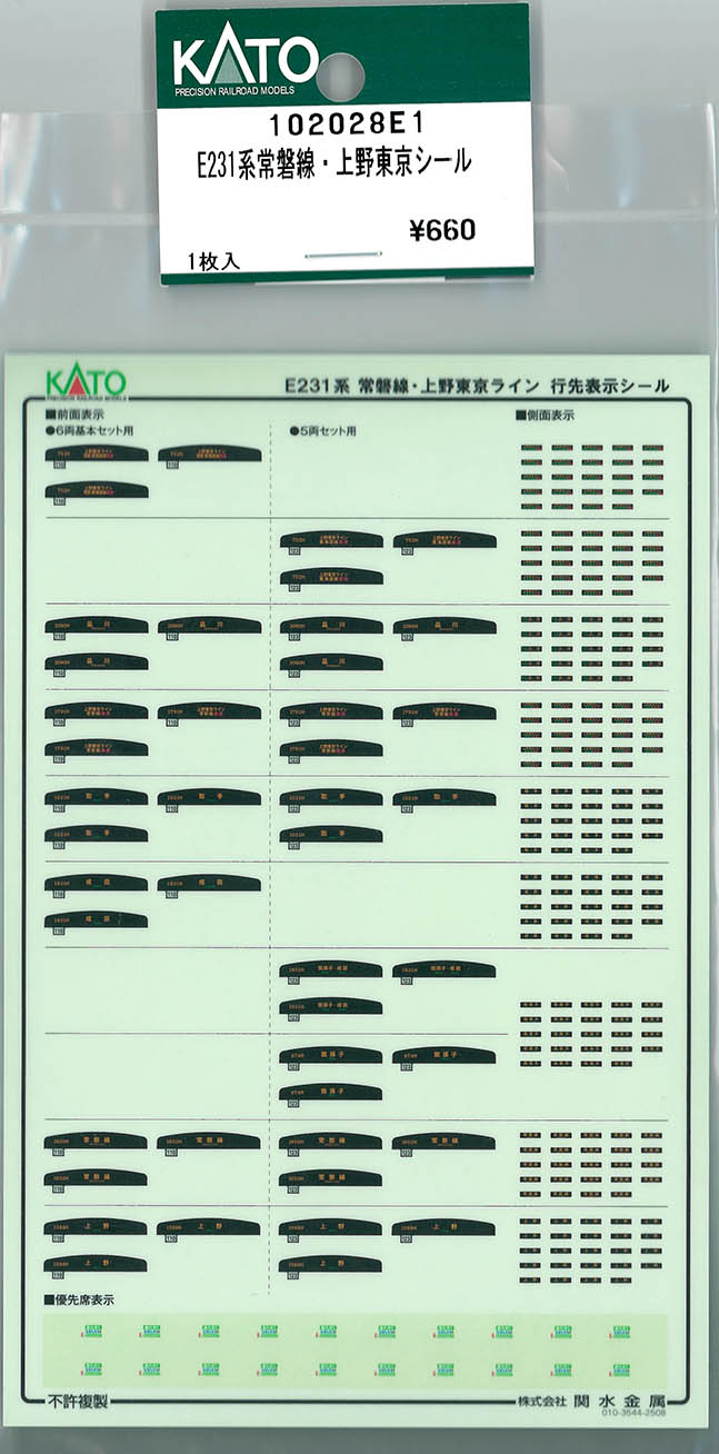 | 102028E1 | E231系 常磐線・上野東京 シール | 1枚入 | ¥660 | ¥660 | 新製品 |