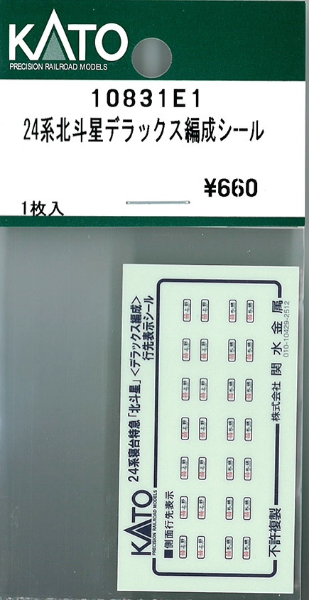 | 10831E1 | 24系北斗星デラックス編成 シール | 1枚入 | ¥660 | ¥660 | 再生産 |