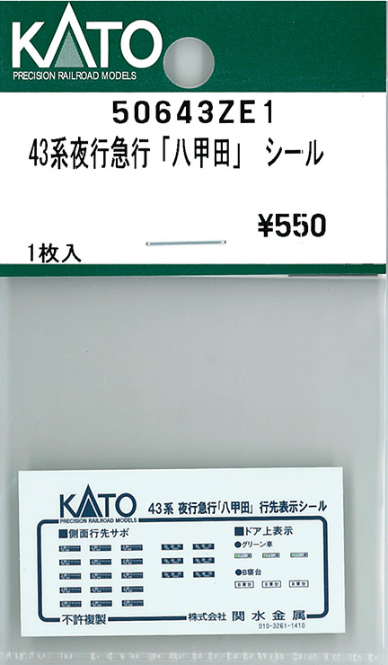 | 50643ZE1 | 43系夜行急行 八甲田 シール | 1枚入 | ¥550 | ¥550 | 新製品 |