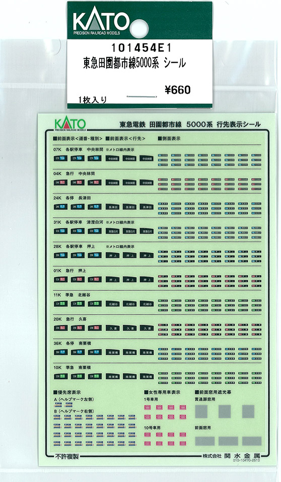 | 101454E4 | 東急田園都市線5000系 前面行先表示 | セット分 | ¥660 | ¥660 | 新製品 |