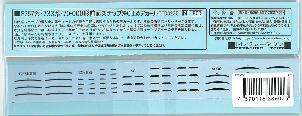 | TTD323C | E257系・733系・70-000形 前面ステップ滑り止めデカール | 各種1式 | ¥880 | ¥880 | |