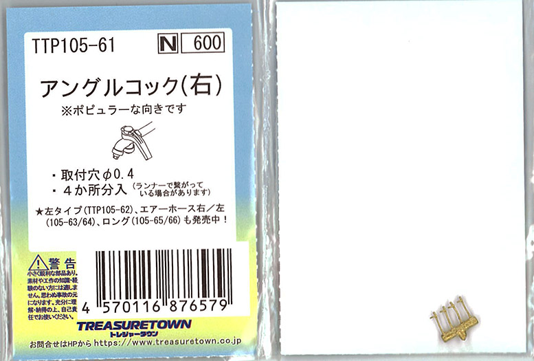 | TTP105-61 | アングルコック(右) 取付穴φ0.4 | 4個入 | ¥660 | ¥660 | |
