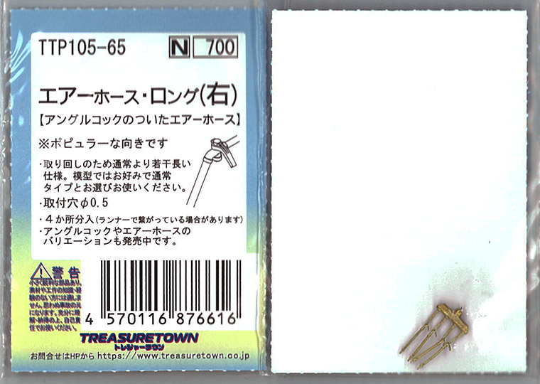 | TTP105-66 | エアホース・ロング(左) 取付穴φ0.5 | 4個入 | ¥770 | ¥770 | |