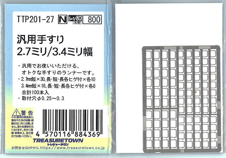 | TTP201-27 | 汎用手すり 2.7ミリ/3.4ミリ幅 | 1式 | ¥880 | ¥880 | |