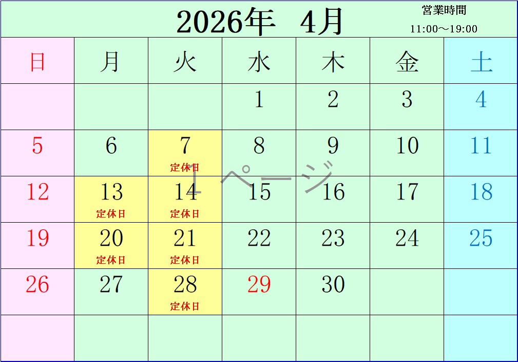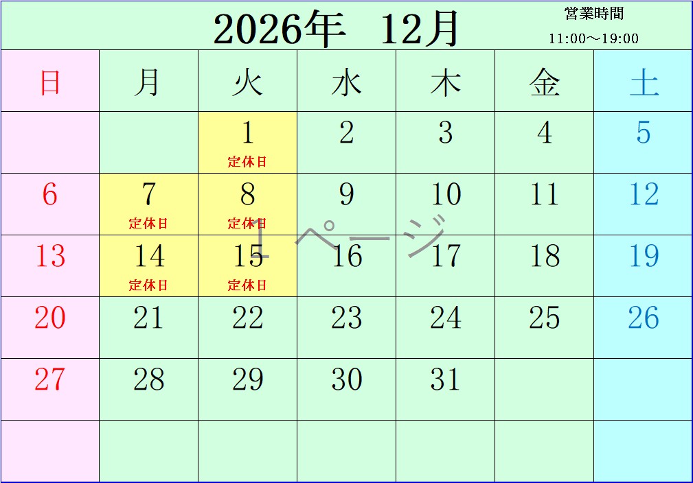 | 1月1日(木)~1月4日(日)は年始休業しております。 |
