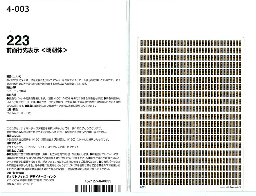 #10363 | 座席表現シート (TOMIX 近郊形電車 褪青色) | ¥1,100 | ¥1,100 | 再生産 |