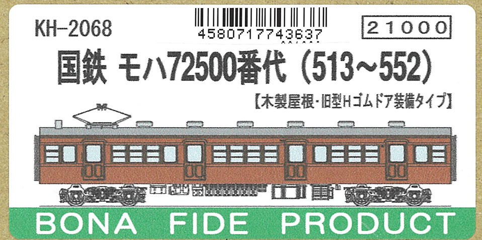 KH-2068 | 国鉄モハ72-500 (513~552) キット | \23,100 | \21,945 | 新製品 |