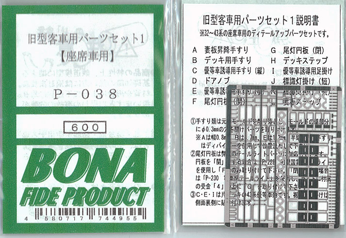 | P-038 | 旧型客車用パーツセット1 (座席車用) | ¥660 | ¥660 | ||