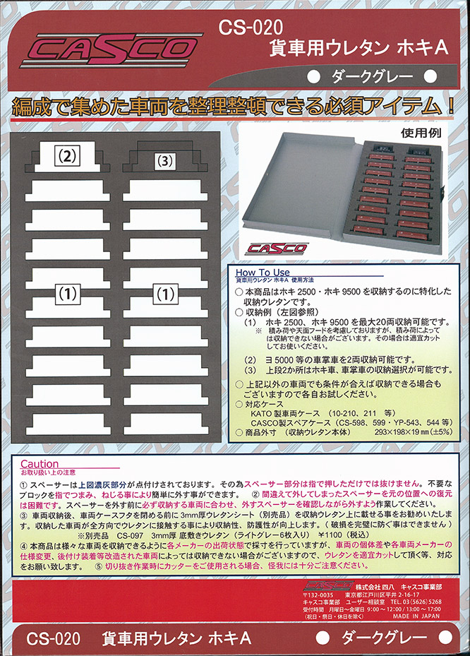 | CS-020 | 貨車用ウレタン ホキA ダークグレー | 1枚入 | ¥1,100 | ¥990 | 新製品10%OFF |