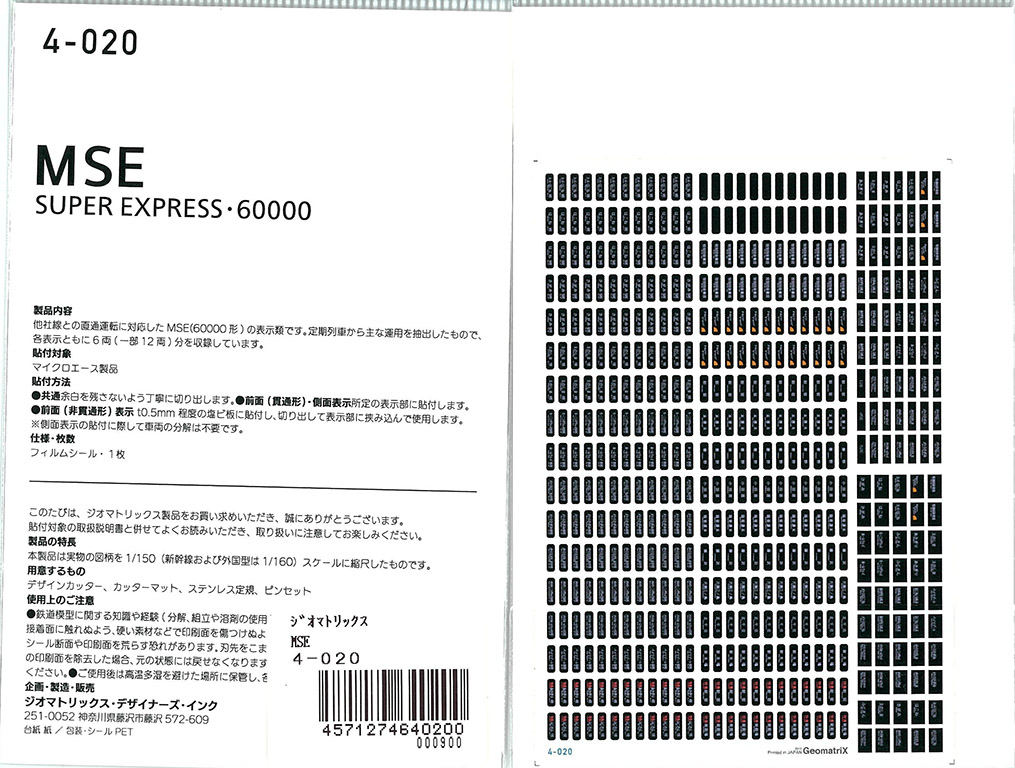 シール 小田急60000形 MSE SUPER EXPRESS 60000 行先表示(MicroAce製品対応) |