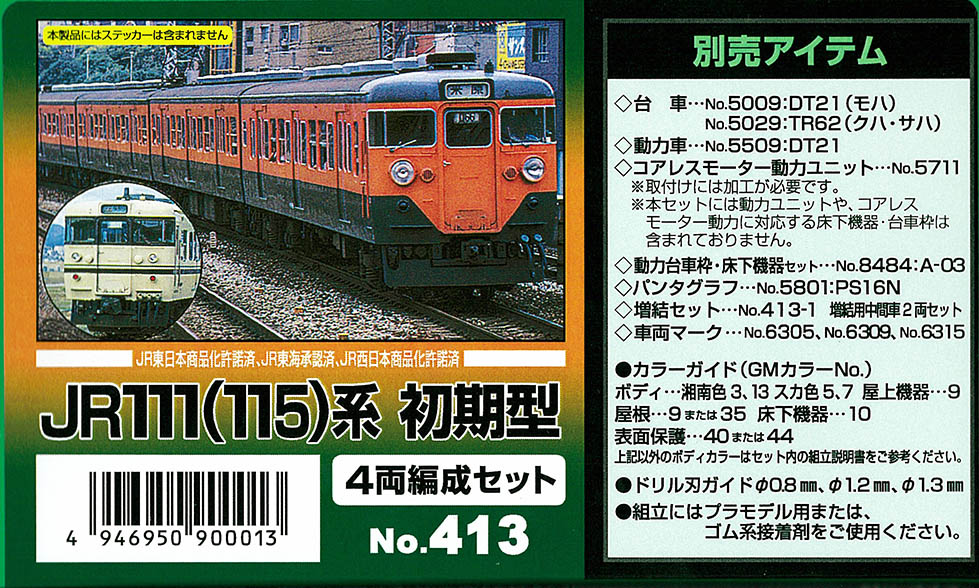 | #413 | JR111/115系初期型 | 4両 | ¥4,180 | ¥3,762 | 再生産10%OFF |