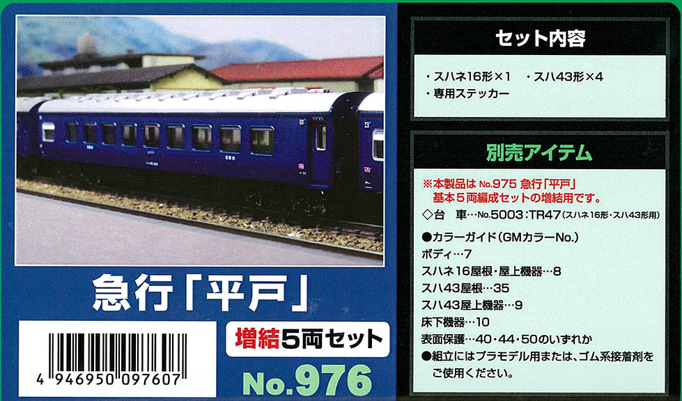 | #976 | 国鉄急行 平戸 | 増結5両 | ¥3,960 | ¥3,564 | 新製品10%OFF |