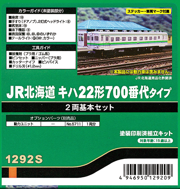 | #1292S | JR北海道キハ22-700 塗装済みキット | 基本2両 | ¥12,650 | ¥10,120 | 新製品20%OFF |