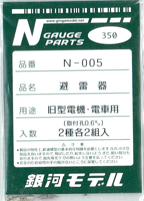 | N-005 | 避雷器 (旧型電機・電車用) | 各2個 | ¥385 | ¥385 | |
