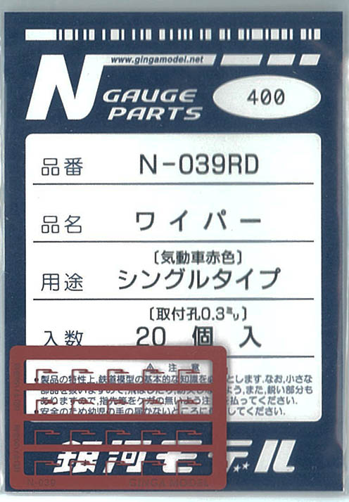 | N-039RD | ワイパー (ダブルアームタイプ・気動車赤色/取付孔0.3o) | 20個入 | ¥440 | ¥440 | |