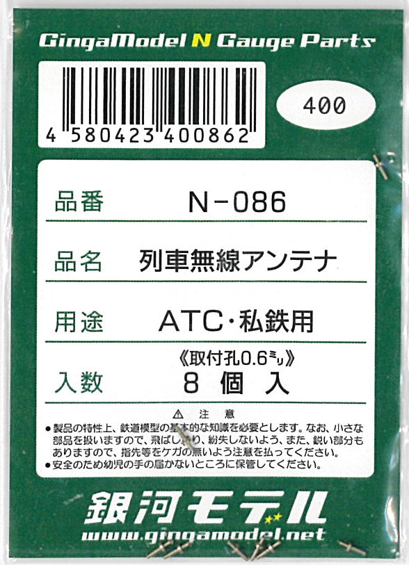| N-086 | 列車無線アンテナ (ATC・私鉄用) | 8個入 | ¥440 | ¥440 | |