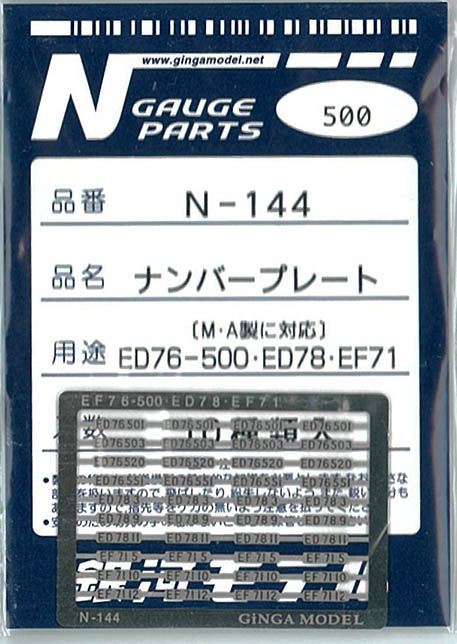 | N-144 | ナンバープレート (マイクロED76-500/78・EF71) | ¥550 | ¥550 | ||