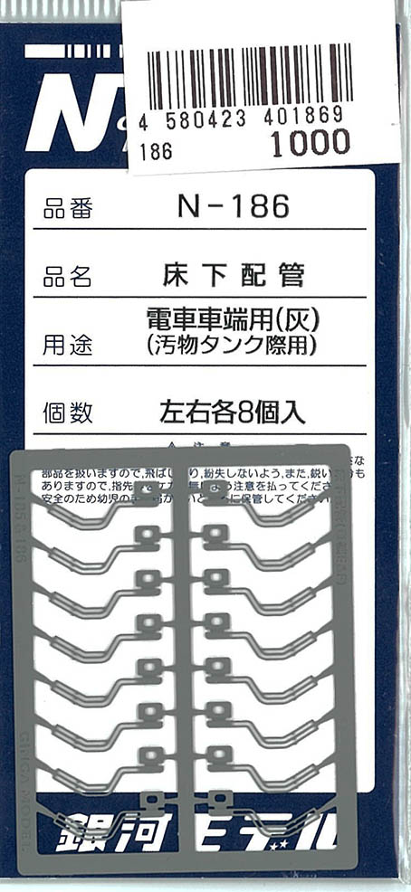 | N-182 | 床下配管(先頭車端用/灰) | 各8個 | ¥1,100 | 完売 | |