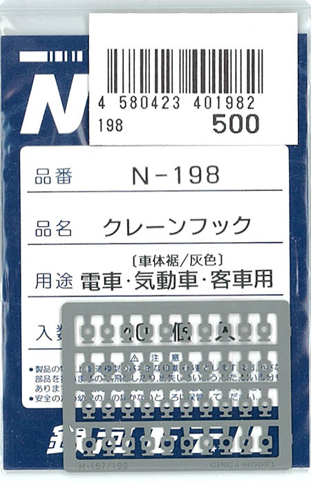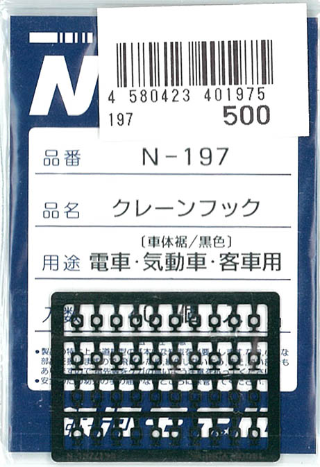 | N-198 | クレーンフック 電車・気動車・客車用(灰) | 40個入 | ¥550 | ¥550 | |