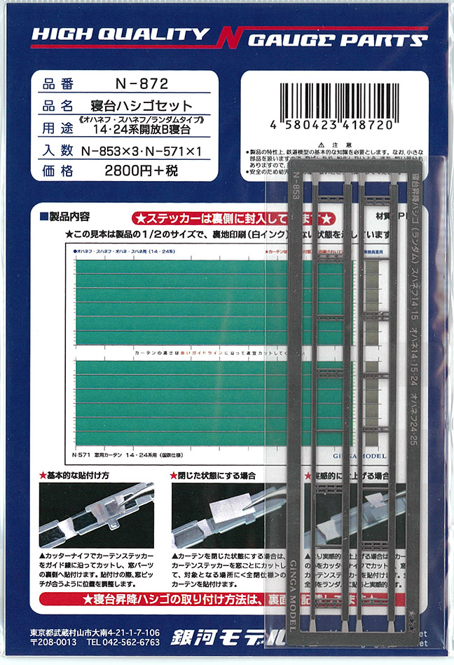 | N-872 | 寝台ハシゴ・カーテンセット14・24系 (オハネフ・スハネフ/ランダム) | ¥3,080 | ¥3,080 | ||