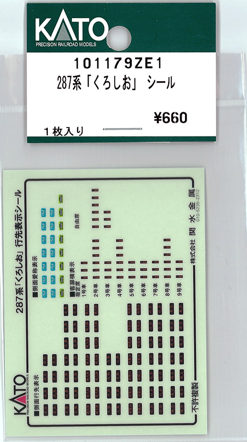 | 101179E1 | 287系(くろしお) シール | 1枚入 | ¥550 | ¥550 | 新製品 |