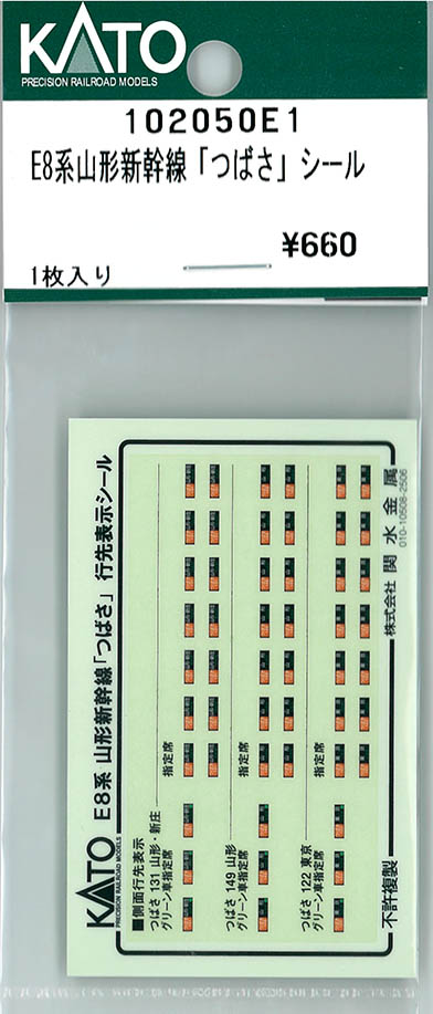 102050E1 | E8系山形新幹線 つばさシール | 1枚入 | ¥660 | ¥660 | 新製品 |