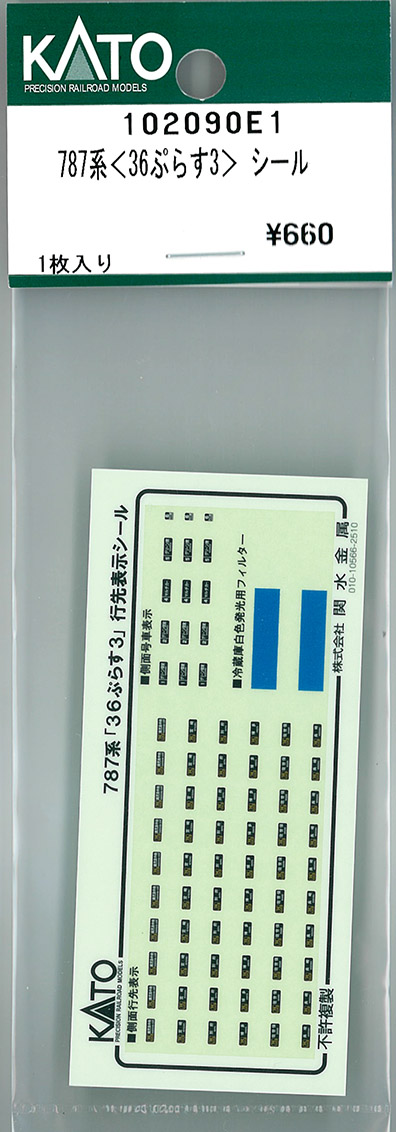 | 102090E1 | 787系<36ぷらす3> シール | 1枚入 | ¥660 | ¥660 | 新製品 |