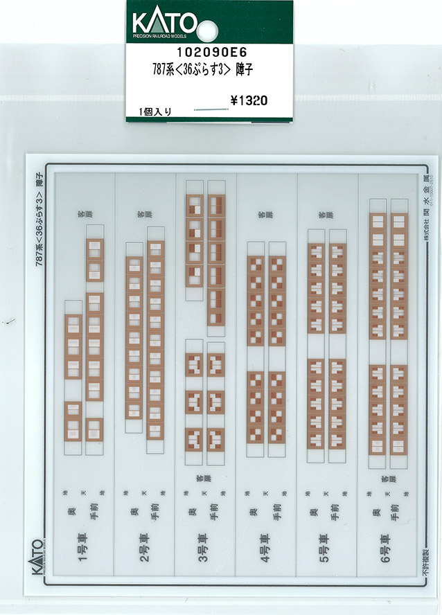 | 102090E6 | 787系<36ぷらす3> 障子 | 1個入 | ¥1,320 | ¥1,320 | 新製品 |