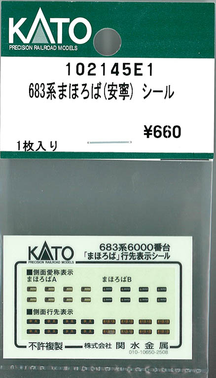 | 102145E1 | 683系 まほろば(安寧) シール | 1枚入 | ¥660 | ¥660 | 新製品 |