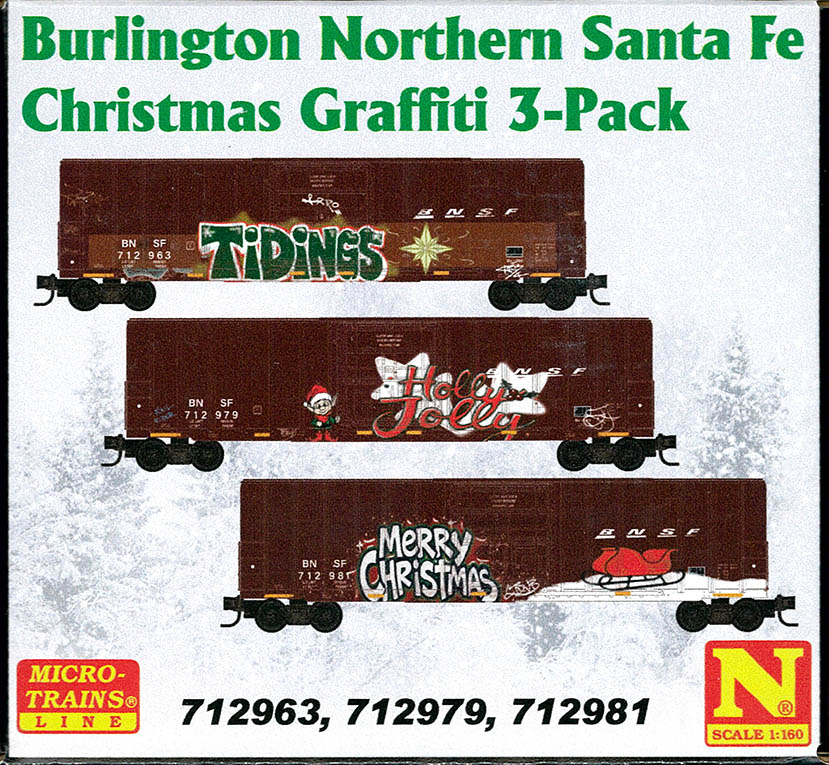 50' Rib Side Box Car BNSF 3-Pack (Christmas Graffiti) |